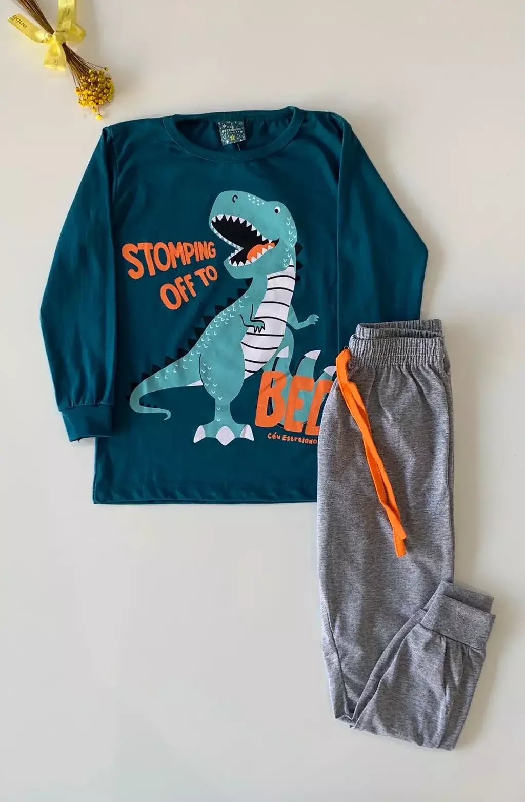 Conjunto Infantil Pijama Dino Verde Esmeralda