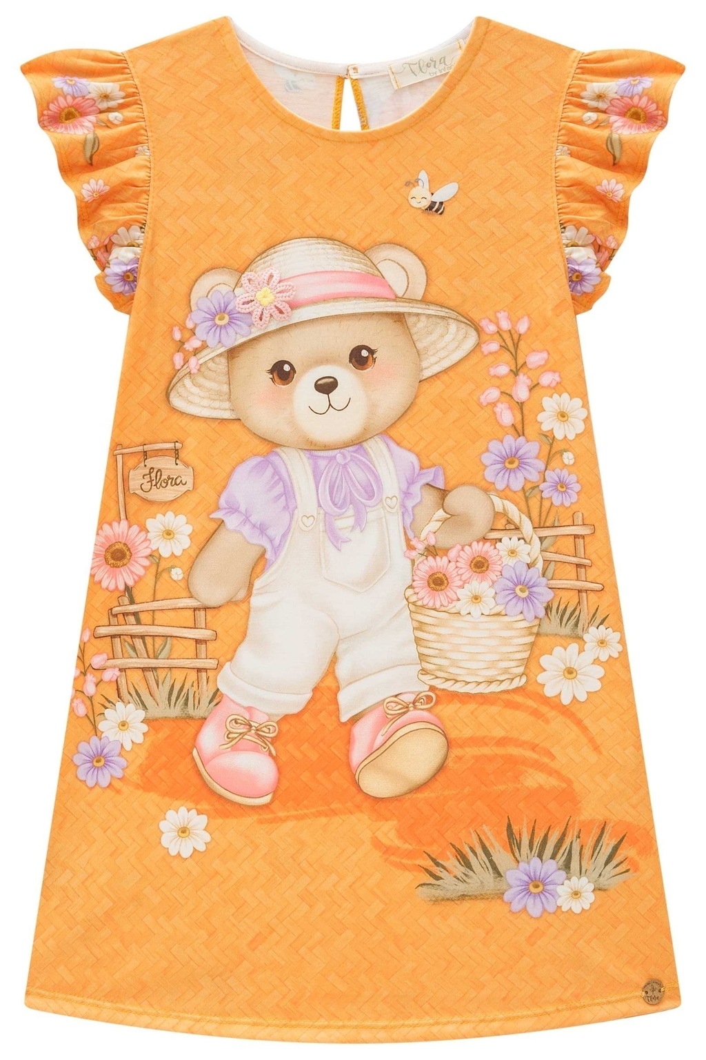 Vestido Infantil Fresh Ursa Camponesa Laranja Flora Infanti