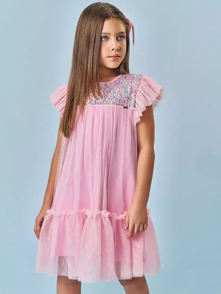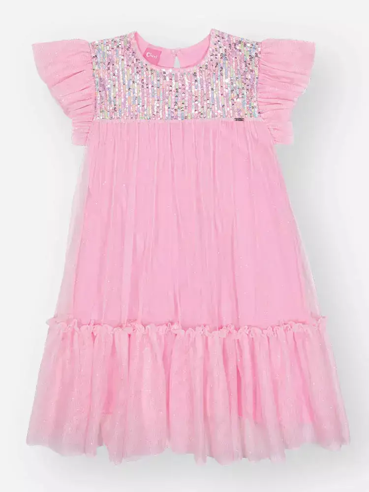 Vestido Infantil Luxo de Tule com Peito em Lantejoulas – Cinti (Tamanhos disponíveis)