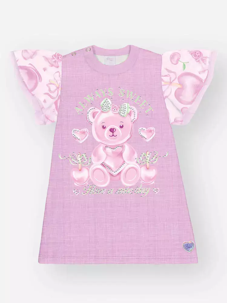 O Vestido Infantil Rosa Ursa Sweet é a escolha ideal para quem busca um look fofo, confortável e com o jeitinho infantil que toda mamãe ama.